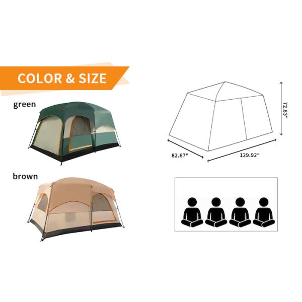 4-Person 3.3*2.1*1.85M Outdoor All Weather Khaki Waterproof Coated Polyester 2-House Design Camping Tent Images |